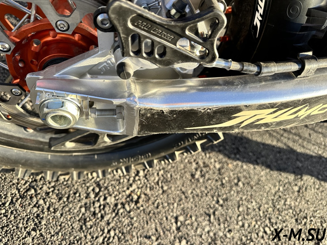Пластик используется KTM2020 – очень прочный и распространенный, что делает его максимально возможным к обслуживанию. Руль IGP TwinWall 22/28 алюминиевый на всех моделях! Силиконовые грипсы Nibbi Racing – левая на замке, правая на короткоходной ручке газа Nibbi. Рычаги тормоза/сцепления – неломайки, из фрезерованного алюминия от CNC. Влагозащищенные кнопки старт/стоп на руле. Складной рычаг переключения передач, фрезерованный, из алюминия, от бренда PRO CAKEN. Лапка тормоза так же фрезерованная, алюминиевая. Самая легкая и прочная приводная цепь RK520MXZ уже установлена!