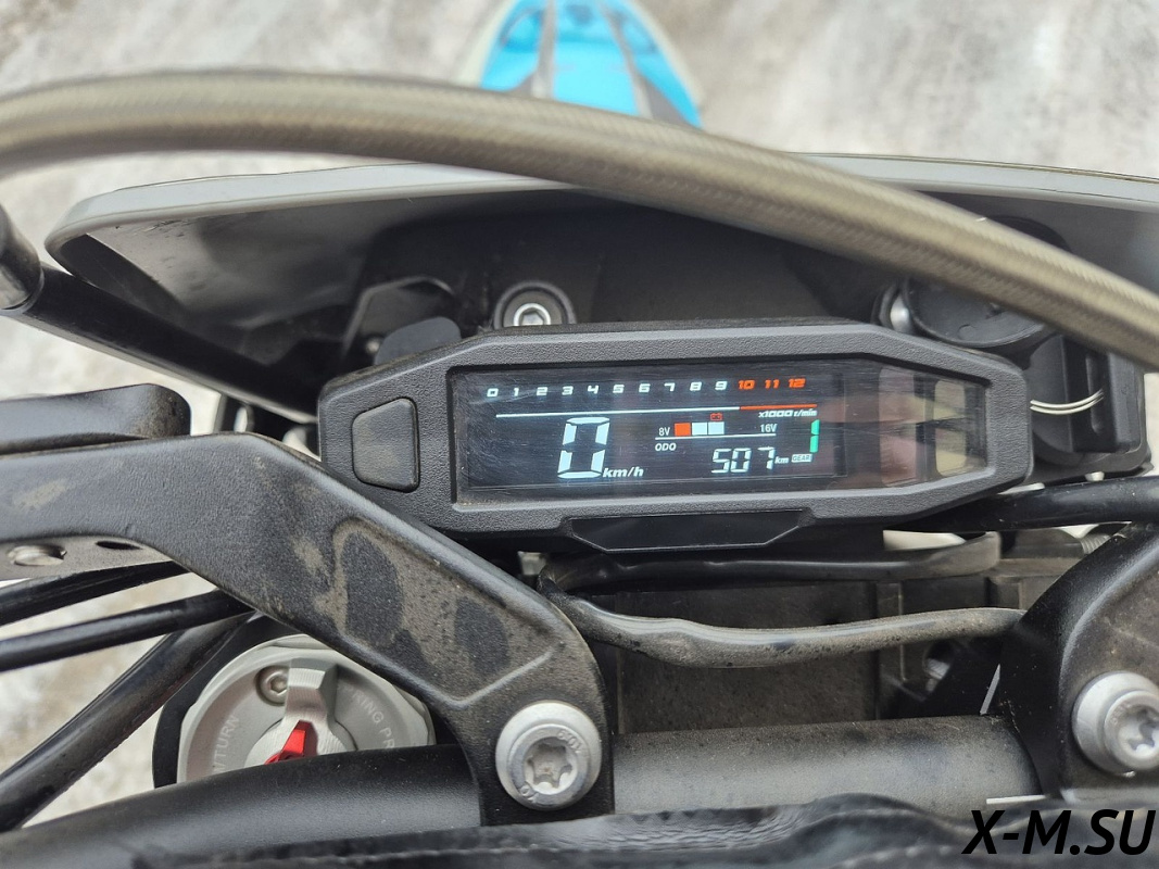 Головная фара с пятью светодиодными линзами светит очень ярко и позволяет продолжить покатушки, либо просто вернуться домой в темное время суток. Приборная панель ЖК отображает всю текущую информацию о состоянии мотоцикла. Вся электроника имеет влагозащищенные разъемы, которые абсолютно исключают попадание воды и образование коррозии! Питает электронику аккумулятор, Li-ion, общим весом 200 грамм!!!