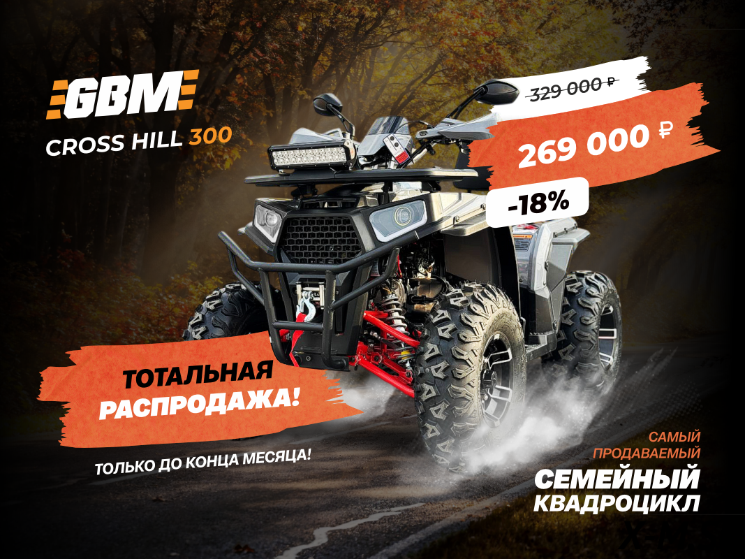 Эт просто ракета! GBM CROSS HILL 300 NEW PREMIUM. Я в восторге! Мотор прёт как бешеный, подвеска проглатывает все неровности. Взял для охоты и рыбалки – идеально подходит! Лебедка, светодиоды – всё на месте. Качество супер, как в японских вещах. Клёвый квадрик, советую всем!