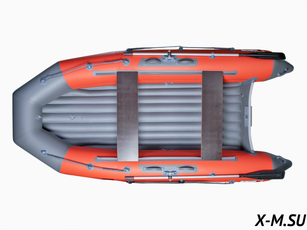 Дно НДНД (надувное дно низкого давления) тримаранного типа обеспечивает исключительную остойчивость на воде. За счёт дополнительных боковых спонсонов такая конструкция повышает манёвренность, улучшает прохождение боковой волны и способствует более плавному выходу на глиссирование. Это делает MARK надёжной и устойчивой даже в условиях больших водоёмов. Лодка позволяет уверенно чувствовать себя при посадке, перемещении внутри и даже стоя во время рыбалки.